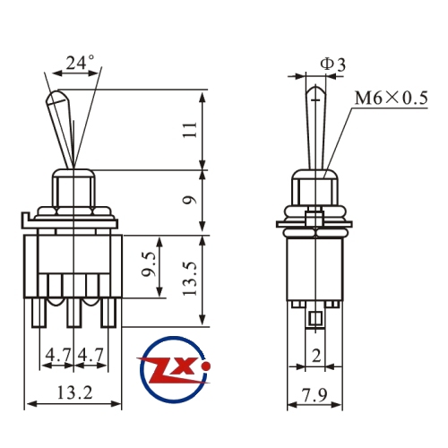Etiquetas: 0125-3 - MTS123 Pulsante 2 Lados - Chave com Alavanca