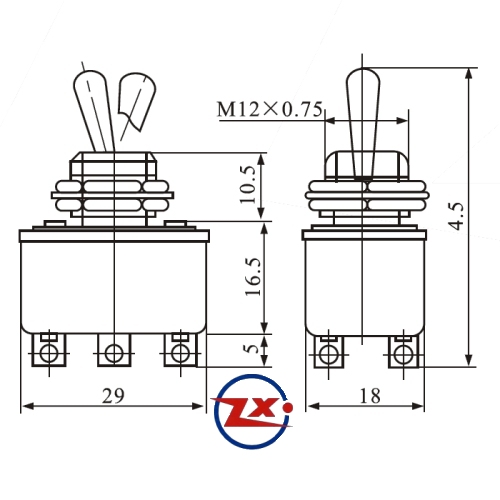 0127 - Chave com Alavanca - KN3A-2X2 ON-OFF-ON