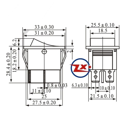 Etiquetas: 0043 – Chave Gangorra KCD4-201C 4T 15/30A 250V com marcação preta