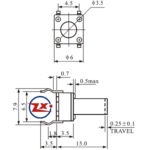 Etiquetas: 0076 - Chave Tactil - KFC-A06-6X6X15 4T 180°