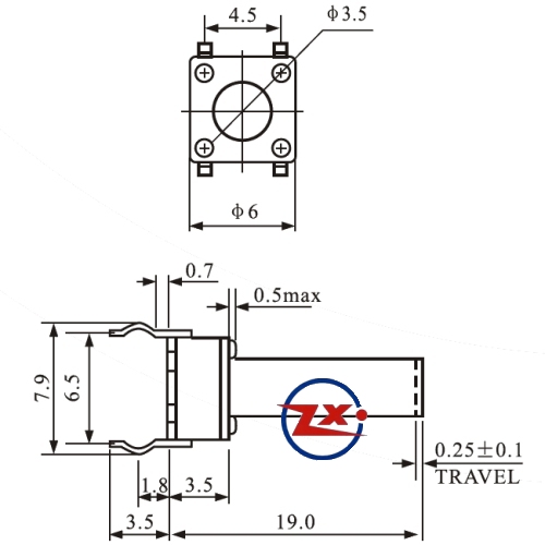 0077 - Chave Tactil - KFC-A06-6X6X19 4T 180°