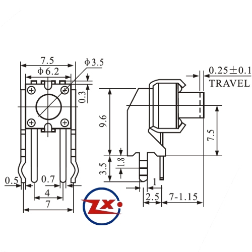 Etiquetas: 0080-7 - Chave Tactil - KFC-A06-W2-7 4T 90°