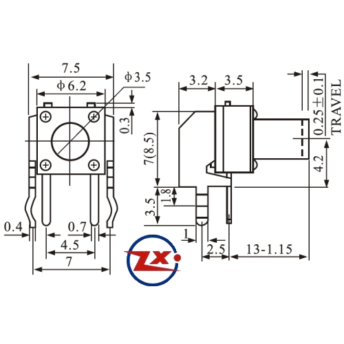 0084 - Chave Tactil - KFC-A06-W3-13 4T 90°