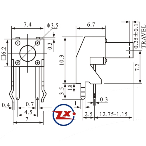0085 - Chave Tactil - KFC-A06-W4-12,75 4T 90°