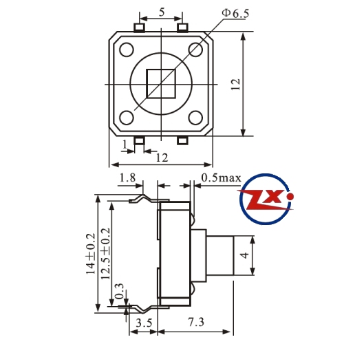 0093-1 - Chave Tactil - KFC-A06-12X12X7,3 4T 180°