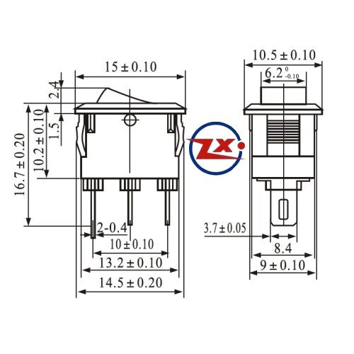 Etiquetas: 0054 – Chave Gangorra KCD11-102 3T 3A 250V c/ marcação preta