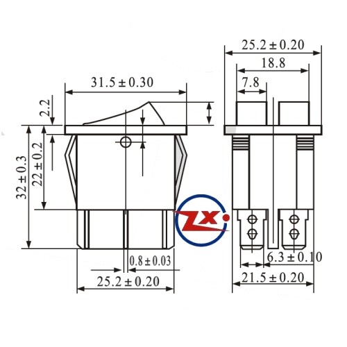 Etiquetas: 0042 – Chave Gangorra KCD3-202N com neon 6T 15A 250V com marcação vermelha