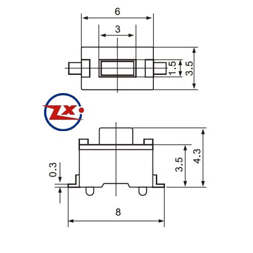 Etiquetas: KFC-A06-4, 3x6x4, 3 180°, Preto Vermelho, CHAVE TACTIL SMD