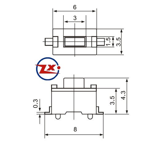0091 - Chave Tactil - KFC-A06-3X6X4,3 SMD 2T 180° Pt Vm