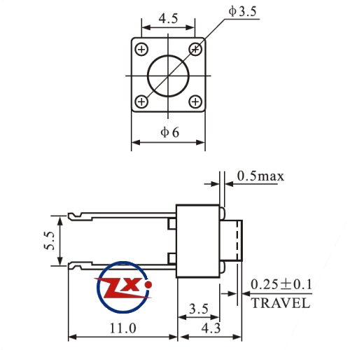 0072-0 - Chave Tactil - 6X6X65 CJ27 2T 180° pt 6650