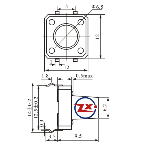 0093-10 - Chave Tactil - KFCA06 12X12X9,5 4T 180°