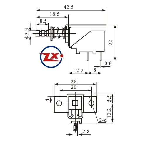 Etiquetas: 0157 - Chave Tecla - SW3-2 2T Com Trava Com Base Para Painel
