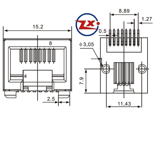 YH-08 8P8C - CONECTOR JACK SMD