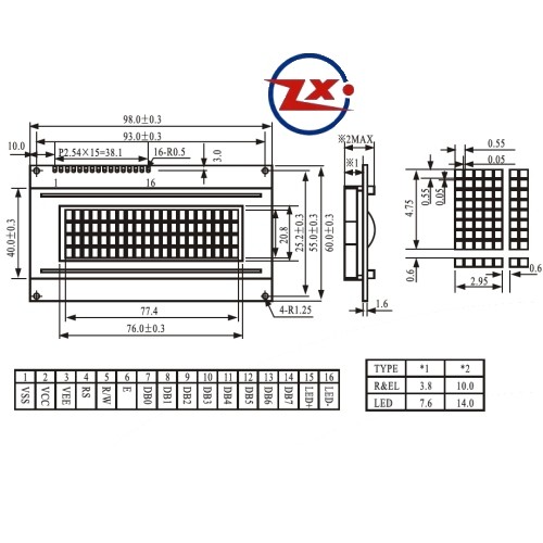 0009-5-2 20x4 com Backlight Verde