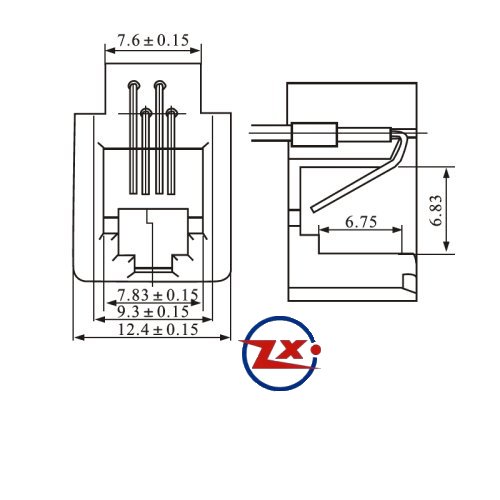 Etiquetas: 0605, YH104 616M 4P4C 4 VIAS AM PT 52mm VM VD 190mm, JACK PARA TELEFONE