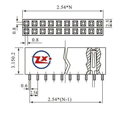 0349-9 - 2x40 MCI 90° 2,54mm - SOQUETE BARRA DE PINO