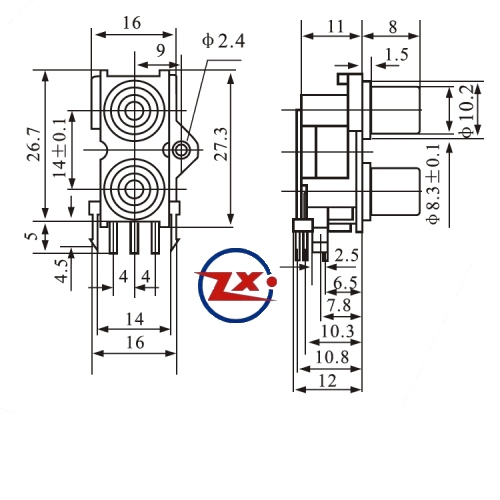 0204-14-2 - TOMADA RCA - av2-8,4-9 Vermelha / Branca - T-Vm